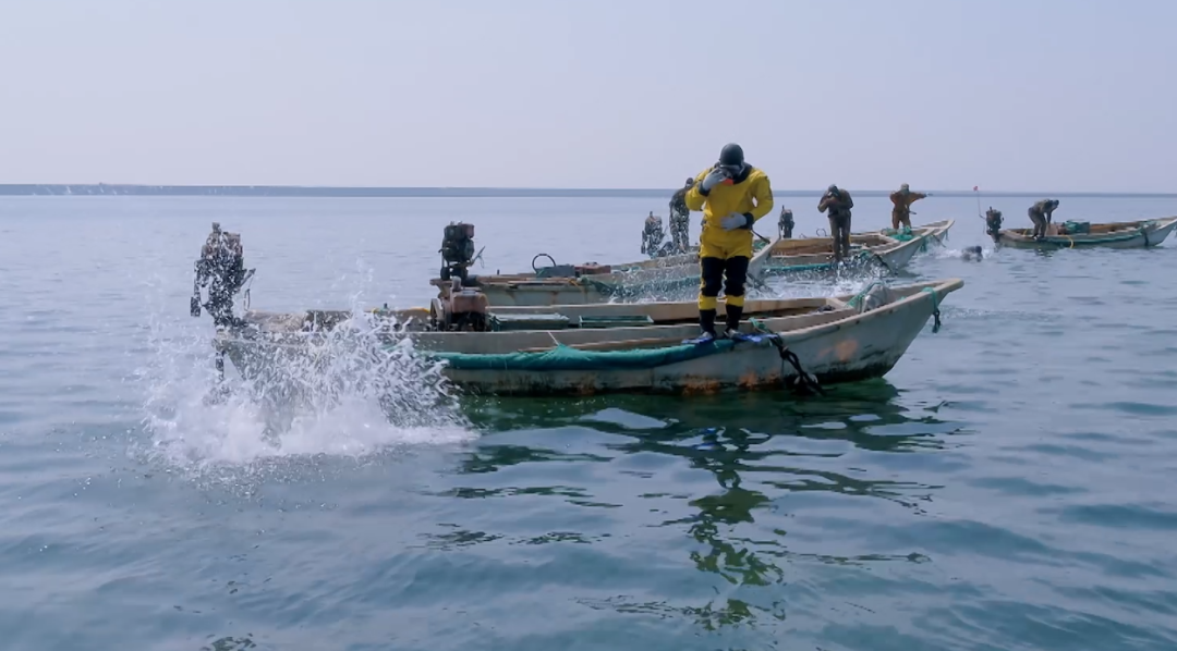 儀式過(guò)后,海猛子們登上漁船,開足馬力,一起向蔚藍(lán)的大海前進(jìn),開啟海參滿倉(cāng)的2021春季刺參采捕之旅。